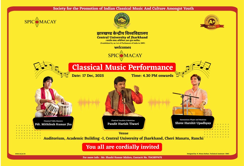 Screen Reader Press 2025 2024 2023 Gallery 2025 2024 2023 Career Development Cell Tender Samarth Login Employees Student Contact Careers Hindi Site Home About Us Statutory Body Kulgeet Act/Statute Governance Visitor Chancellor Founding Vice Chancellor Vice Chancellor Registrar Finance Officer Controller of Examination Librarian Dean Students Welfare Proctorial Board Stautory Officers Teaching Employees Committee/Cells Court Officers & Staffs Organogram Academics Department School Deans Dean R & D Dean Academic Affair Deans of Schools Faculty Profile Institution's Innovation Council Programs Syllabus Board of Studies Research & Development Achievement ILMS Admission Admission-2026 CUET PG - 2026 CUET UG-2026 Admission-2025 CUET UG-2025 CUET PG - 2025 CSAB - 2025 Ph.D. - 2025 Integrated B.Ed. - 2025 Admission-2024 CUET UG-2024 B.Tech. - M.Tech. Admission 2024-25 CUET PG - 2024 Ph.D. - 2024 Admission-2023 CUET UG-2023 CUET PG - 2023 Ph.D. - 2023 Admission-2022 CUET UG - 2022 CUET PG - 2022 Ph.D. - 2022 MBA Through CAT - 2022 M.Tech. Through GATE - 2022 Admission Rules Admission Cell Exam Student Students Corner Sports EBSB Hostel Convocation Alumni Student/Exam Notices Downloads Forms NSS NCC Students Discipline and Conduct rules Ragging Students Discipline and Conduct rules Anti-Ragging Helpline Anti-Ragging Undertaking Anti-Ragging Gazette Digi-Locker Account Fee Structure Grievance Redressal PhD Scholars Library IQAC NIRF Campus Technical Cell(ICT) CIF राजभाषा प्रकोष्ठ Health Centre Engineering Cell Guest House Transport Sports +91 - 9304953708 pro@cuj.ac.in Press Release 2023 2024 2025 2026 NIRF NIRF Careers Placement Tender Samarth Login Employees Student Contact Go to Hindi Site Home Governance Visitor Chancellor Founding Vice Chancellor Vice Chancellor Executive Council Academic Council Finance Committee Court Stautory Officers Registrar Finance Officer Controller of Examination Librarian Teaching Employees Officers & Staffs DSW Proctorial Board SC/ST Cell ICC Academics Department School Management Sciences Mass Communication & Media Technologies Languages Natural Sciences Engineering & Technology the Study of Culture Natural Resource Management Social Science & Humanities Education Faculty Profile Rajbhasha Prakoshth (Hindi Cell) Institution's Innovation Council Programs Syllabus Board of Studies Academic Calendar 2023-24 Research & Development Faculty C.V. Achievement LMS @ CUJ Admission Admission-2025 CUET UG-2025 CUET PG - 2025 CSAB - 2025 Ph.D. - 2025 Integrated B.Ed.- 2025 Admission-2024 CUET UG-2024 CUET PG - 2024 Ph.D. - 2024 Admission-2023 CUET UG-2023 CUET PG - 2023 Ph.D. - 2023 Admission-2022 CUET UG - 2022 CUET PG - 2022 Ph.D. - 2022 MBA Through CAT - 2022 M.Tech. Through GATE - 2022 Admission Rules Admission Cell Student Convocation Students Corner Hostel Digi-Locker Account Alumni Student/Exam Notices NSS NCC Student Services Support Cell Fee Structure The Energiea Khelotsav 2019 Students Discipline and Conduct rules Ragging Students Discipline and Conduct rules Anti-Ragging Helpline Anti-Ragging Gazette Grievance Redressal Academic Calendar 2022-23 Oppurtunity for Students PhD Scholars Scholarship Exam IQAC Gallery 2023-2024 2024-2025 Campus Health Centre Guest House Transport Sports Library