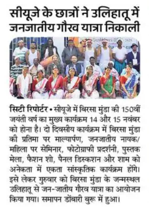 CUJ में भगवान बिरसा मुंडा की 150वीं जयंती वर्ष के उपलक्ष्य में विविध कार्यक्रमों का आयोजन