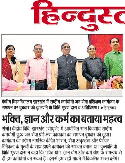 सीयूजे का 7 दिवसीय राष्ट्रीय कर्मयोगी जन सेवा प्रशिक्षण कार्यक्रम का समापन