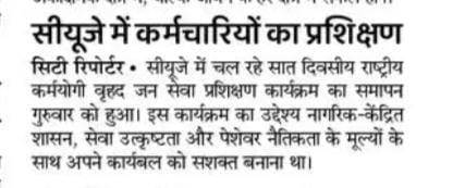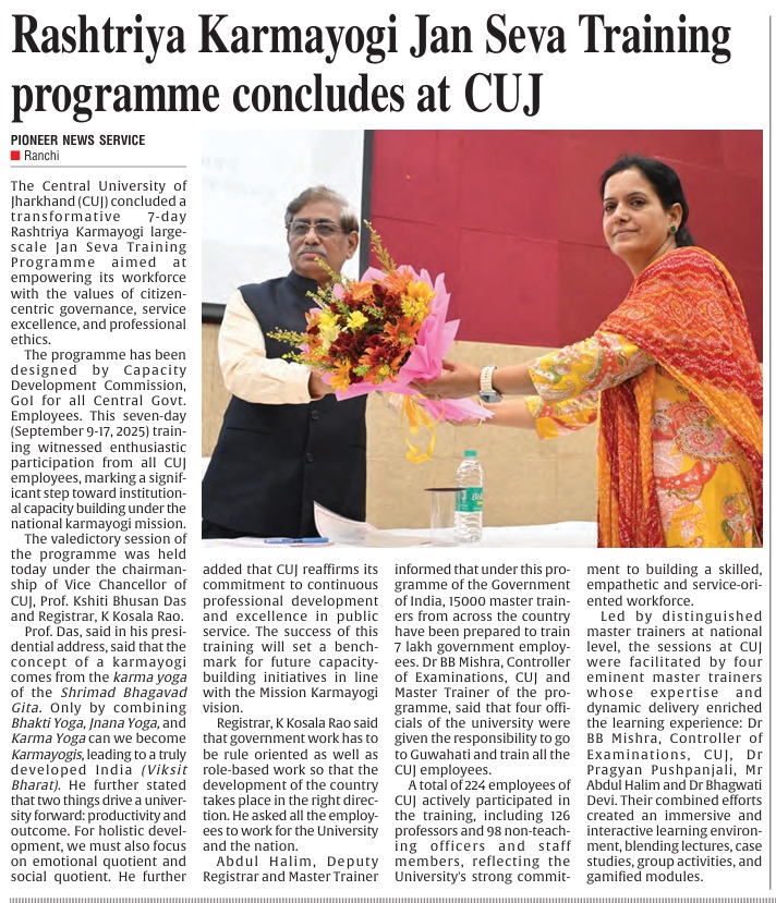 सीयूजे में ‘राष्ट्रीय कर्मयोगी’ प्रशिक्षण कार्यक्रम का समापन, 224 कर्मचारियों को मिली ट्रेनिंग