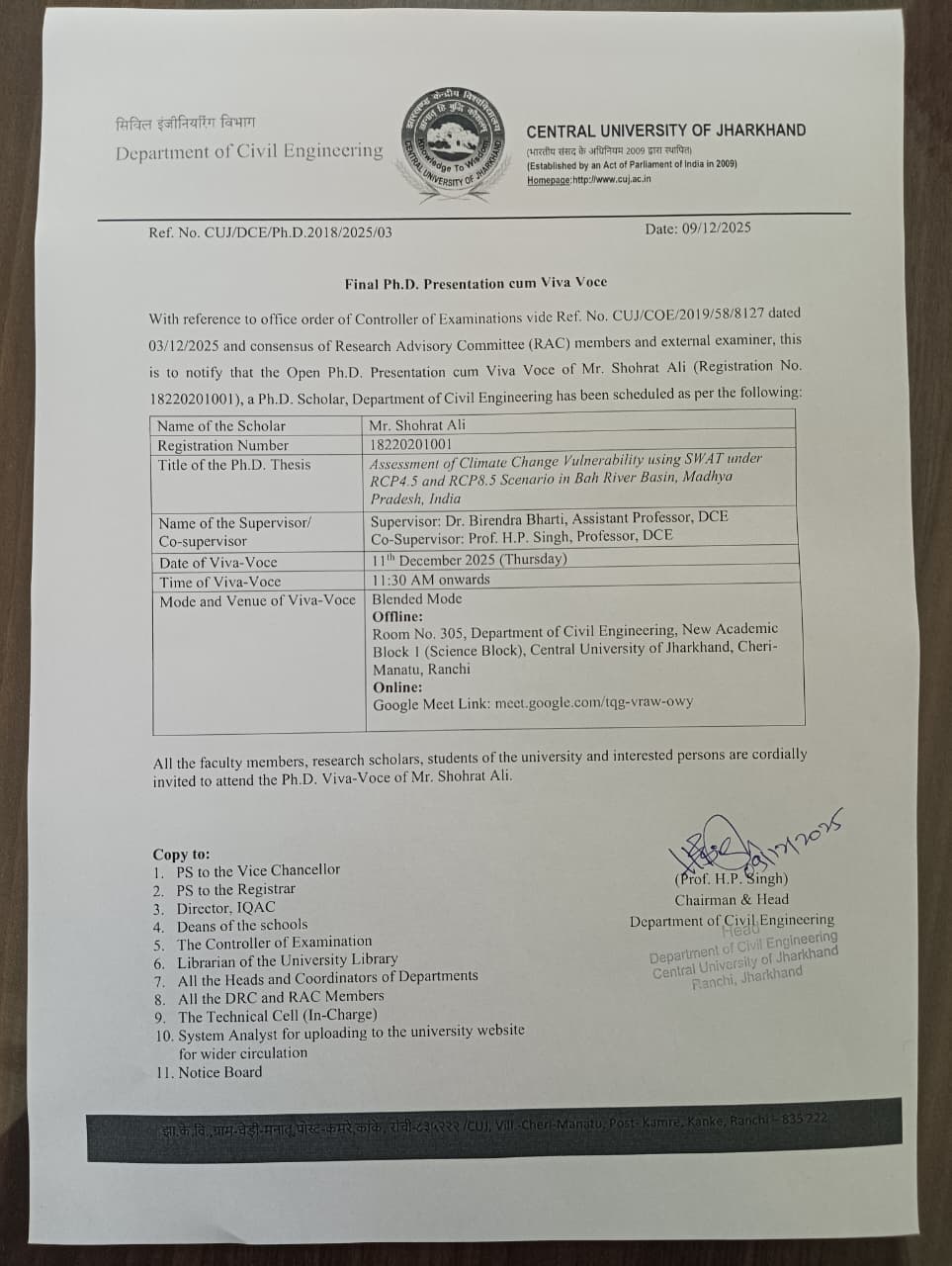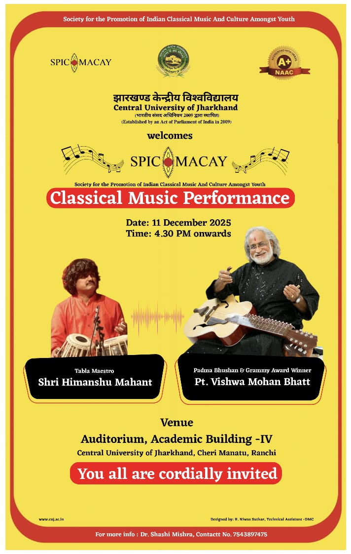 Screen Reader Press 2025 2024 2023 Gallery 2025 2024 2023 Career Development Cell Tender Samarth Login Employees Student Contact Careers Hindi Site Home About Us Statutory Body Kulgeet Act/Statute Governance Visitor Chancellor Founding Vice Chancellor Vice Chancellor Registrar Finance Officer Controller of Examination Librarian Dean Students Welfare Proctorial Board Stautory Officers Teaching Employees Committee/Cells Court Officers & Staffs Organogram Academics Department School Deans Dean R & D Dean Academic Affair Deans of Schools Faculty Profile Institution's Innovation Council Programs Syllabus Board of Studies Research & Development Achievement ILMS Admission Admission-2026 CUET PG - 2026 CUET UG-2026 Admission-2025 CUET UG-2025 CUET PG - 2025 CSAB - 2025 Ph.D. - 2025 Integrated B.Ed. - 2025 Admission-2024 CUET UG-2024 B.Tech. - M.Tech. Admission 2024-25 CUET PG - 2024 Ph.D. - 2024 Admission-2023 CUET UG-2023 CUET PG - 2023 Ph.D. - 2023 Admission-2022 CUET UG - 2022 CUET PG - 2022 Ph.D. - 2022 MBA Through CAT - 2022 M.Tech. Through GATE - 2022 Admission Rules Admission Cell Exam Student Students Corner Sports EBSB Hostel Convocation Alumni Student/Exam Notices Downloads Forms NSS NCC Students Discipline and Conduct rules Ragging Students Discipline and Conduct rules Anti-Ragging Helpline Anti-Ragging Undertaking Anti-Ragging Gazette Digi-Locker Account Fee Structure Grievance Redressal PhD Scholars Library IQAC NIRF Campus Technical Cell(ICT) CIF राजभाषा प्रकोष्ठ Health Centre Engineering Cell Guest House Transport Sports +91 - 9304953708 pro@cuj.ac.in Press Release 2023 2024 2025 2026 NIRF NIRF Careers Placement Tender Samarth Login Employees Student Contact Go to Hindi Site Home Governance Visitor Chancellor Founding Vice Chancellor Vice Chancellor Executive Council Academic Council Finance Committee Court Stautory Officers Registrar Finance Officer Controller of Examination Librarian Teaching Employees Officers & Staffs DSW Proctorial Board SC/ST Cell ICC Academics Department School Management Sciences Mass Communication & Media Technologies Languages Natural Sciences Engineering & Technology the Study of Culture Natural Resource Management Social Science & Humanities Education Faculty Profile Rajbhasha Prakoshth (Hindi Cell) Institution's Innovation Council Programs Syllabus Board of Studies Academic Calendar 2023-24 Research & Development Faculty C.V. Achievement LMS @ CUJ Admission Admission-2025 CUET UG-2025 CUET PG - 2025 CSAB - 2025 Ph.D. - 2025 Integrated B.Ed.- 2025 Admission-2024 CUET UG-2024 CUET PG - 2024 Ph.D. - 2024 Admission-2023 CUET UG-2023 CUET PG - 2023 Ph.D. - 2023 Admission-2022 CUET UG - 2022 CUET PG - 2022 Ph.D. - 2022 MBA Through CAT - 2022 M.Tech. Through GATE - 2022 Admission Rules Admission Cell Student Convocation Students Corner Hostel Digi-Locker Account Alumni Student/Exam Notices NSS NCC Student Services Support Cell Fee Structure The Energiea Khelotsav 2019 Students Discipline and Conduct rules Ragging Students Discipline and Conduct rules Anti-Ragging Helpline Anti-Ragging Gazette Grievance Redressal Academic Calendar 2022-23 Oppurtunity for Students PhD Scholars Scholarship Exam IQAC Gallery 2023-2024 2024-2025 Campus Health Centre Guest House Transport Sports Library