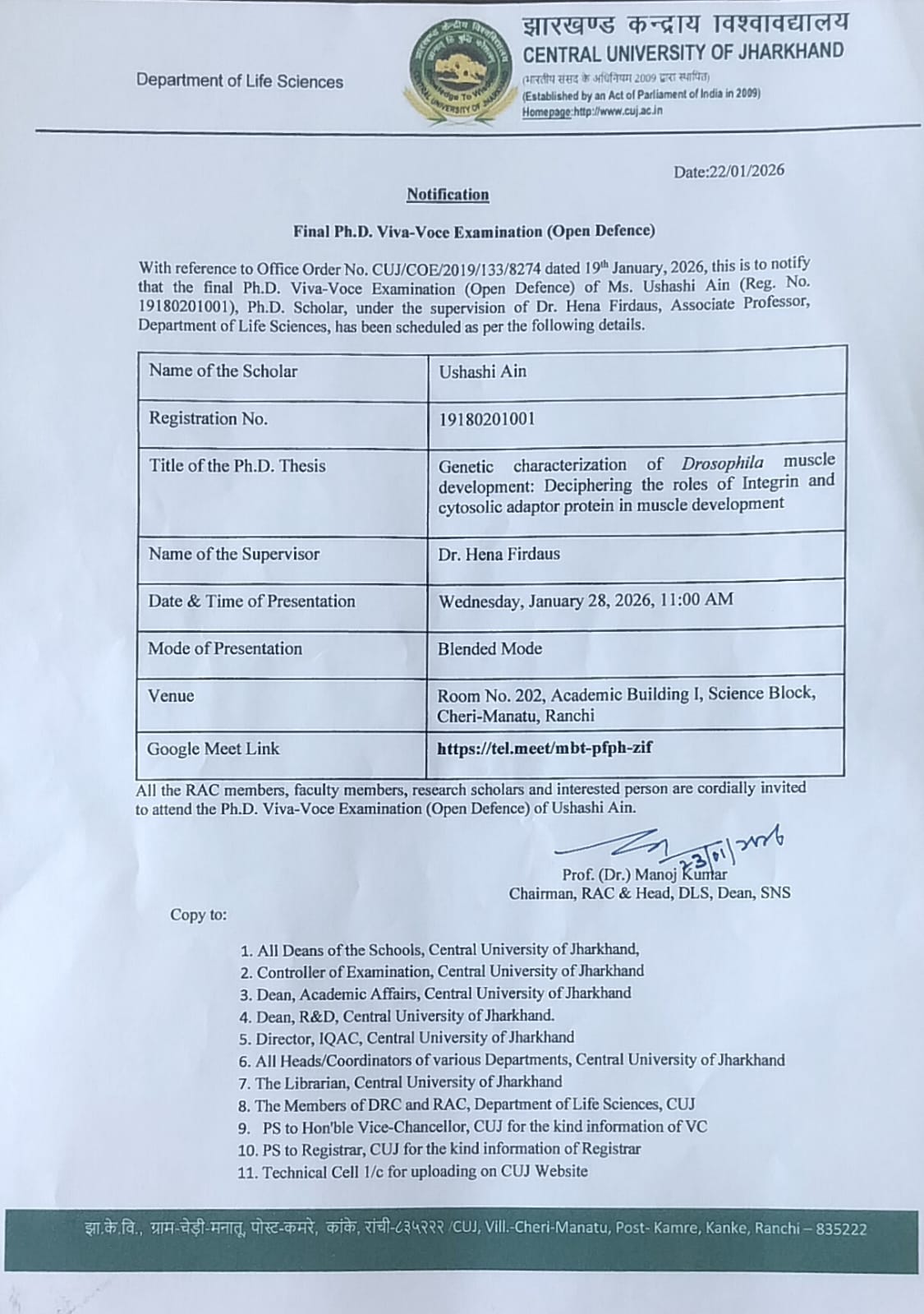 Screen Reader Press 2026 2025 2024 2023 Gallery 2025 2024 2023 Career Development Cell Tender Samarth Login Employees Student Contact Careers Hindi Site Home About Us Statutory Body Kulgeet Act/Statute Governance Visitor Chancellor Founding Vice Chancellor Vice Chancellor Registrar Finance Officer Controller of Examination Librarian Dean Students Welfare Proctorial Board Stautory Officers Teaching Employees Committee/Cells Court Officers & Staffs Organogram Academics Department School Deans Dean R & D Dean Academic Affair Deans of Schools Faculty Profile Institution's Innovation Council Programs Syllabus Board of Studies Research & Development Achievement ILMS Admission Admission-2026 CUET PG - 2026 CUET UG-2026 Admission-2025 CUET UG-2025 CUET PG - 2025 CSAB - 2025 Ph.D. - 2025 Integrated B.Ed. - 2025 Admission-2024 CUET UG-2024 B.Tech. - M.Tech. Admission 2024-25 CUET PG - 2024 Ph.D. - 2024 Admission-2023 CUET UG-2023 CUET PG - 2023 Ph.D. - 2023 Admission-2022 CUET UG - 2022 CUET PG - 2022 Ph.D. - 2022 MBA Through CAT - 2022 M.Tech. Through GATE - 2022 Admission Rules Admission Cell Exam Student Students Corner Sports EBSB Hostel Convocation Alumni Student/Exam Notices Downloads Forms NSS NCC Students Discipline and Conduct rules Ragging Students Discipline and Conduct rules Anti-Ragging Helpline Anti-Ragging Undertaking Anti-Ragging Gazette Digi-Locker Account Fee Structure Grievance Redressal PhD Scholars Library IQAC NIRF Campus Technical Cell(ICT) CIF राजभाषा प्रकोष्ठ Health Centre Engineering Cell Guest House Transport Sports +91 - 9304953708 pro@cuj.ac.in Press Release 2023 2024 2025 2026 NIRF NIRF Careers Placement Tender Samarth Login Employees Student Contact Go to Hindi Site Home Governance Visitor Chancellor Founding Vice Chancellor Vice Chancellor Executive Council Academic Council Finance Committee Court Stautory Officers Registrar Finance Officer Controller of Examination Librarian Teaching Employees Officers & Staffs DSW Proctorial Board SC/ST Cell ICC Academics Department School Management Sciences Mass Communication & Media Technologies Languages Natural Sciences Engineering & Technology the Study of Culture Natural Resource Management Social Science & Humanities Education Faculty Profile Rajbhasha Prakoshth (Hindi Cell) Institution's Innovation Council Programs Syllabus Board of Studies Academic Calendar 2023-24 Research & Development Faculty C.V. Achievement LMS @ CUJ Admission Admission-2026 CUET UG-2026 CUET PG - 2026 Admission-2025 CUET UG-2025 CUET PG - 2025 CSAB - 2025 Ph.D. - 2025 Integrated B.Ed.- 2025 Admission-2024 CUET UG-2024 CUET PG - 2024 Ph.D. - 2024 Admission-2023 CUET UG-2023 CUET PG - 2023 Ph.D. - 2023 Admission-2022 CUET UG - 2022 CUET PG - 2022 Ph.D. - 2022 MBA Through CAT - 2022 M.Tech. Through GATE - 2022 Admission Rules Admission Cell Student Convocation Students Corner Hostel Digi-Locker Account Alumni Student/Exam Notices NSS NCC Student Services Support Cell Fee Structure The Energiea Khelotsav 2019 Students Discipline and Conduct rules Ragging Students Discipline and Conduct rules Anti-Ragging Helpline Anti-Ragging Gazette Grievance Redressal Academic Calendar 2022-23 Oppurtunity for Students PhD Scholars Scholarship Exam IQAC Gallery 2023-2024 2024-2025 Campus Health Centre Guest House Transport Sports Library