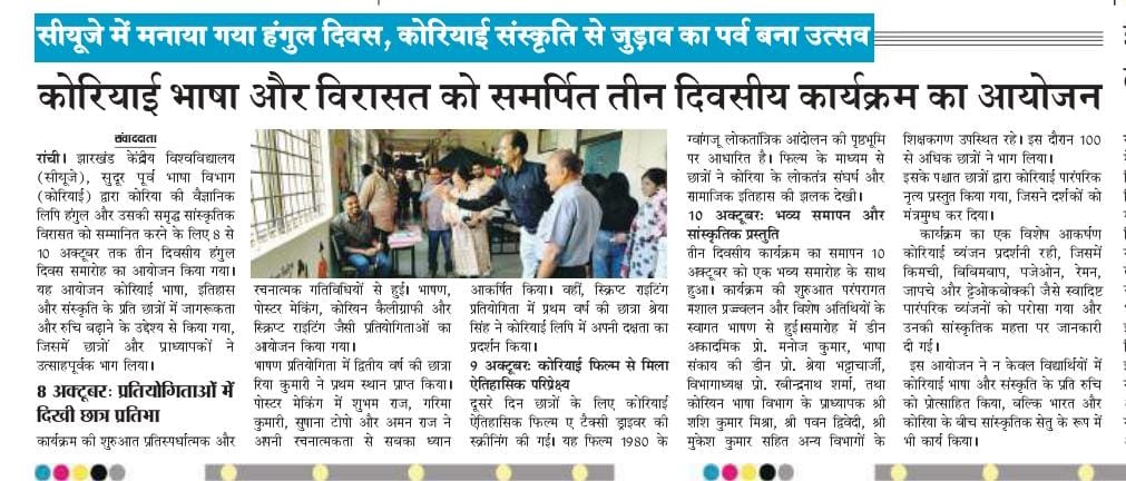 सीयूजे के कोरियन भाषा विभाग में हंगुल दिवस मनाया गया