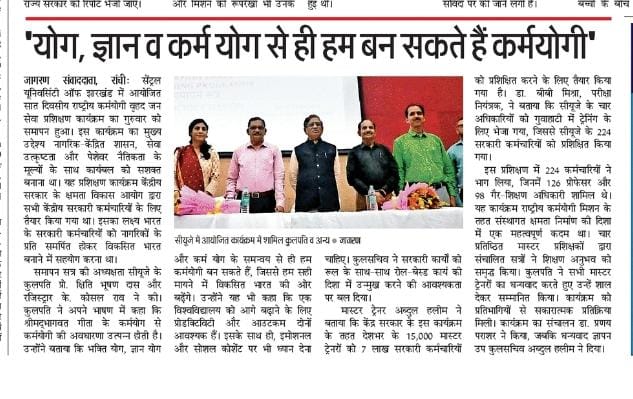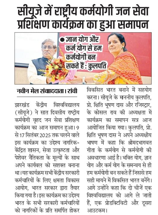सीयूजे में ‘राष्ट्रीय कर्मयोगी’ प्रशिक्षण कार्यक्रम का समापन, 224 कर्मचारियों को मिली ट्रेनिंग