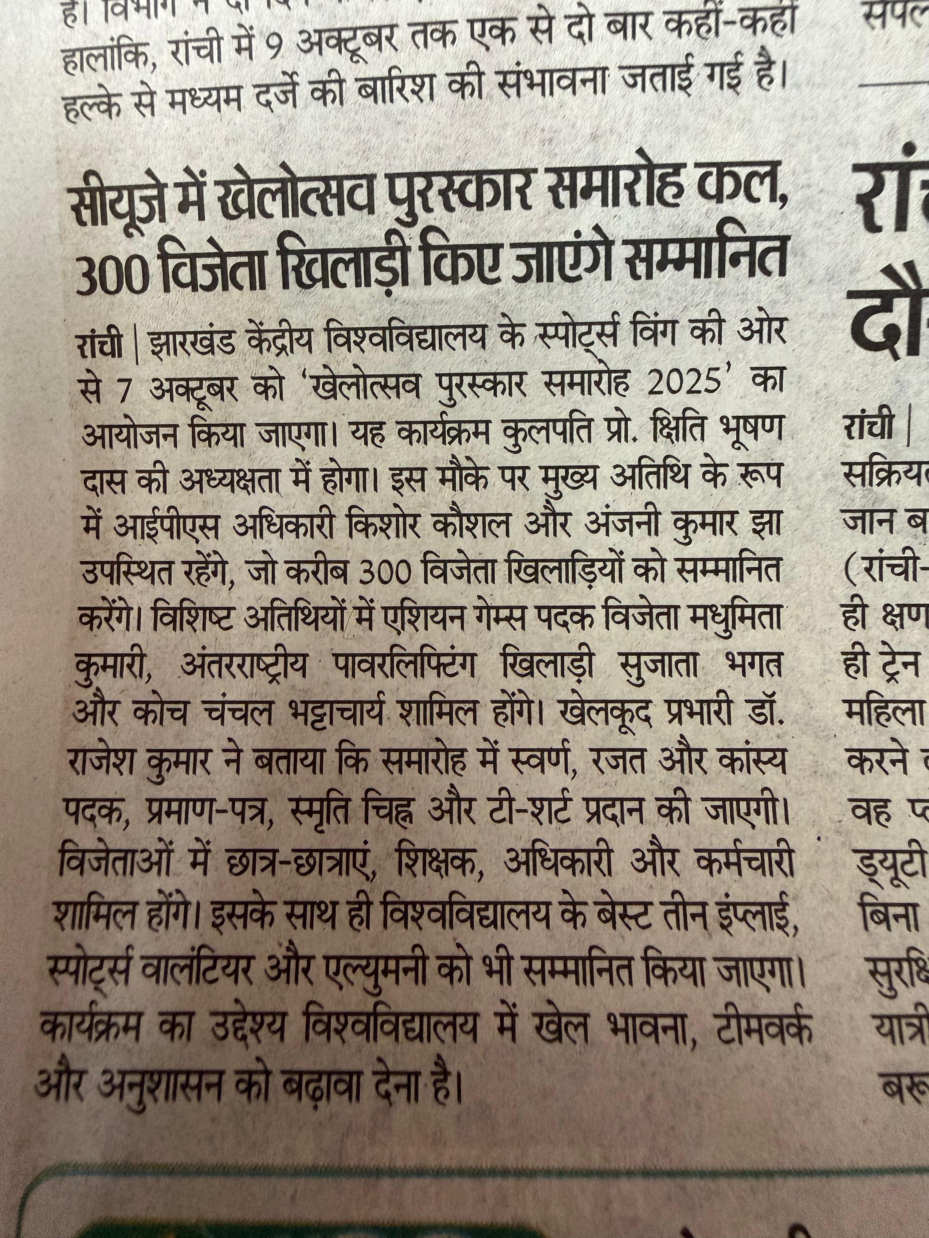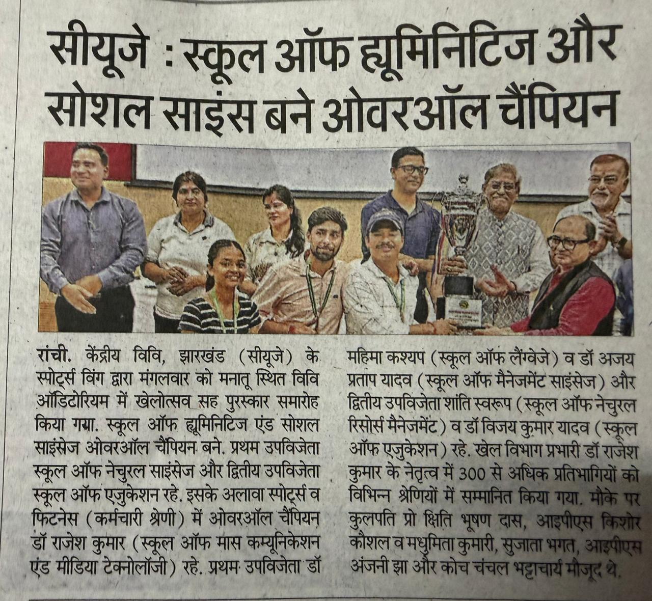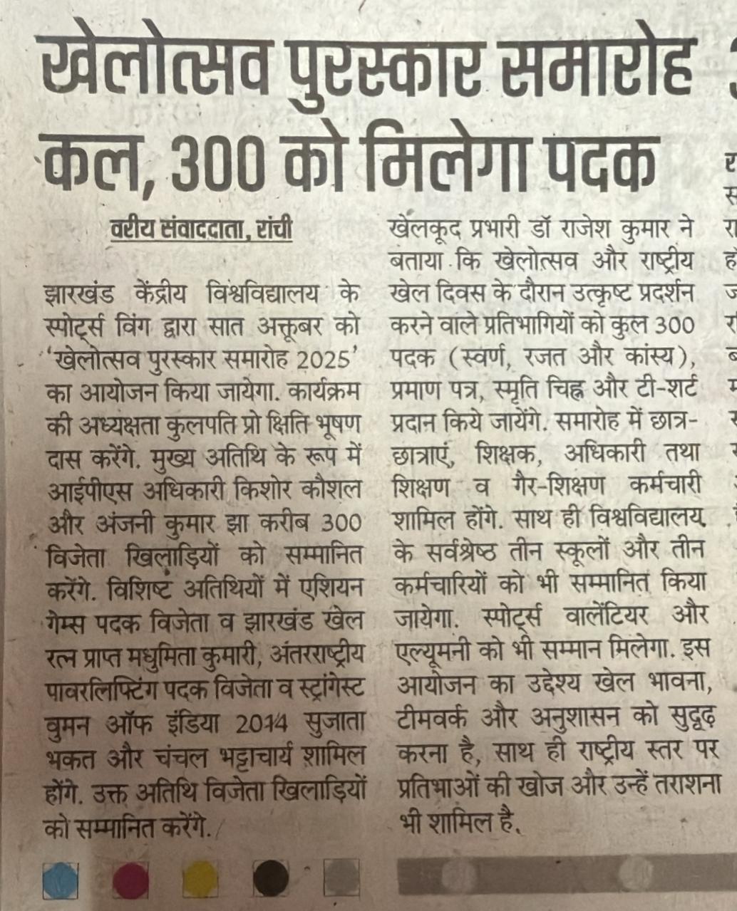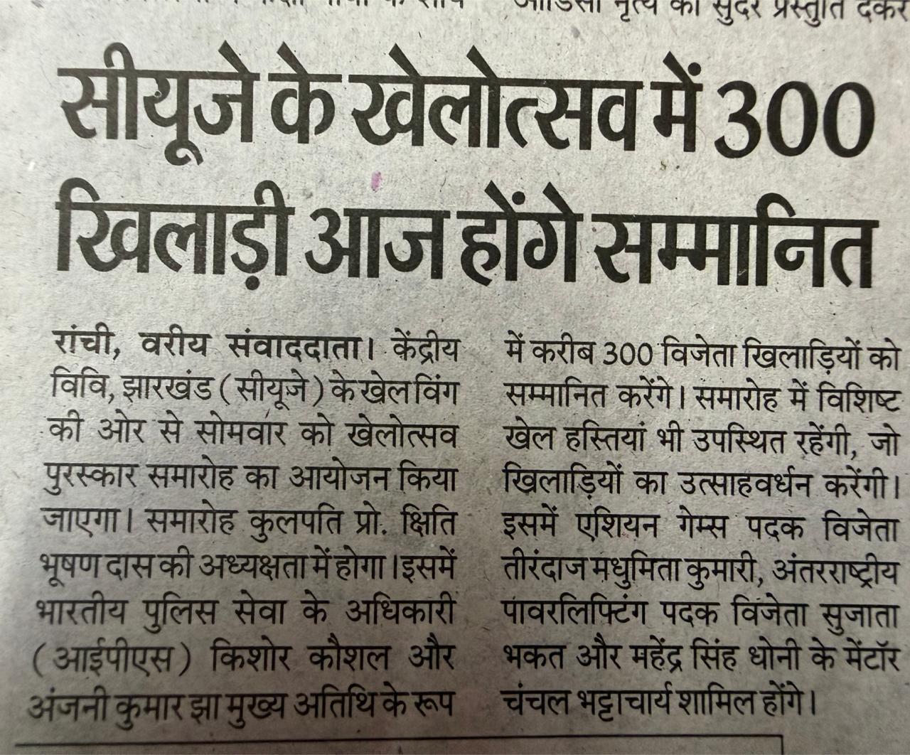 सीयूजे में ‘खेलोत्सव पुरस्कार समारोह’ 7 को, 300 विजेता खिलाड़ी होंगे सम्मानित