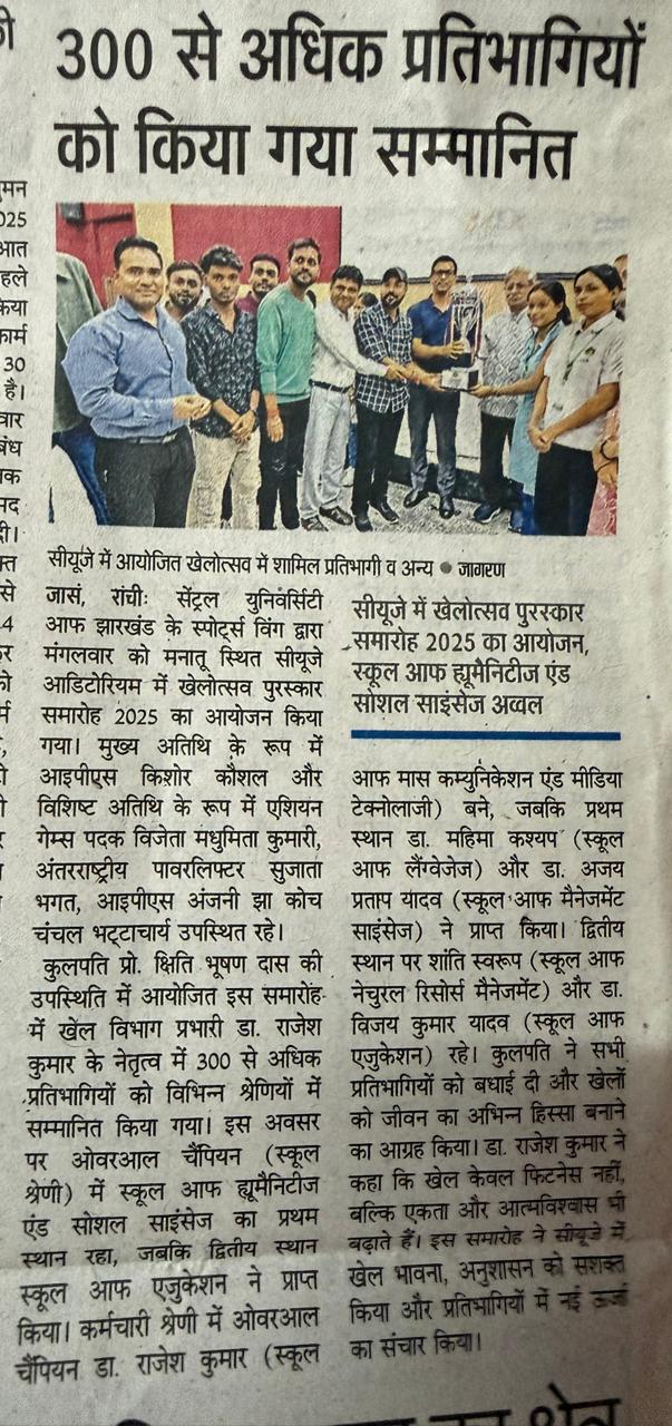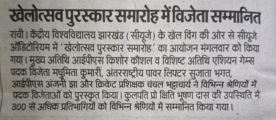 सीयूजे में ‘खेलोत्सव पुरस्कार समारोह 2025’ का हुआ भव्य आयोजन
