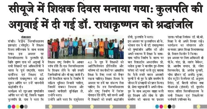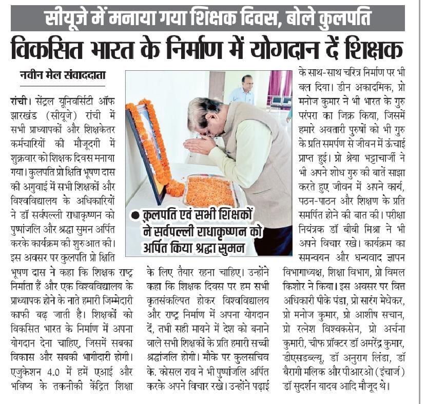 सीयूजे में मनाया गया शिक्षक दिवस, कुलपति की अगुवाई में सभी शिक्षकों ने डॉ. सर्वपल्ली राधाकृष्णन को श्रद्धा सुमन अर्पित किया