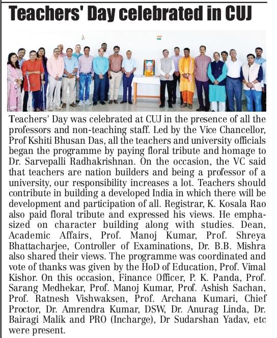 CUJ में मनाया गया शिक्षक दिवस, कुलपति बोले- हम सभी को देना होगा विश्वविद्यालय और राष्ट्र निर्माण में अपना योगदान